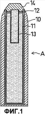 Далее будут описаны предпочтительные варианты осуществления настоящего изобретения. На фиг. 1 показан схематический вид, иллюстрирующий конфигурацию 15-килограммового “красного” боеприпаса А, как примера химического оружия, который должен быть обезврежен способом подрыва, соответствующим настоящему изобретению.