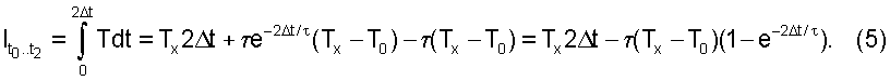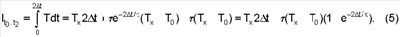 Найдем значение температуры терморезистора в точке t5 (см. временную диаграмму на фиг.2). Для этого определим интегральное значение температуры за время 2 t на интервале от t4 до t6: