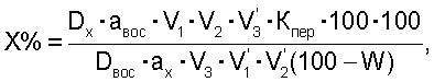 100 – коэффициент для пересчета в проценты; W- влажность, %; Кпер – коэффициент пересчета. Коэффициент пересчета находят из выражения: