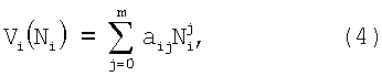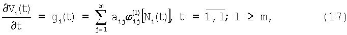 где Vix(t) – составляющая скорости потока; Vi0(t) – составляющая собственной скорости датчика. Отсчеты Ni(t) соответствуют градуировочной характеристике скорости обтекания датчика Vi(t). Если за время l отсчетов составляющая скорости потока Vix(t) меняется незначительно, так что можно принять Дифференцируя выражение (1) для ряда Ni(t) по градуировочной характеристике, получим где При фиксации отсчета Ni0 датчика скорости потока в рабочей среде при отсутствии скорости потока и собственной скорости определяют коэффициент аi0 В частном случае для градуировочной характеристики измерителя скорости потока в виде степенного полинома вида (13) получим или В случае высокоточной модели градуировочной характеристики и малых шумов, при В случае не очень точной модели и при наличии шумов градуировочные коэффициенты При малом уровне шумов в отсчетах gi(t) и Ni(t) и m-дифференциальности функций ускорения собственных движений для вычисления коэффициентов аij могут быть использованы рекуррентные формулы. Введем обозначения Тогда после m-го дифференцирования выражения (18) получим: