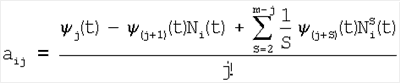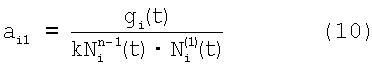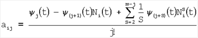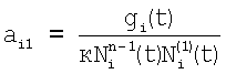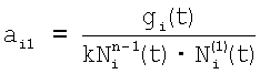 определяют коэффициенты к и aij для j=1 по выражениям