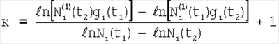 Для градуировочной характеристики вида (8) получим где неизвестными являются m и аi1. Берем отсчеты для двух моментов времени t1 и t2. Можем записать Отсюда: Далее из выражения 22