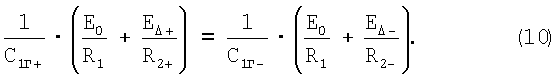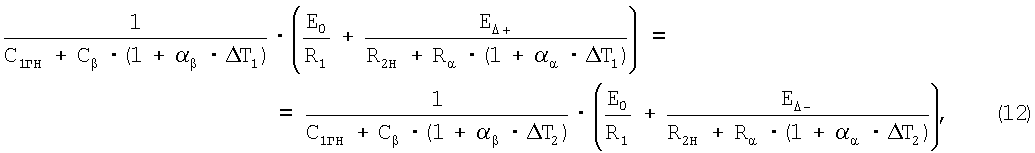где E + – величина напряжения, пропорциональная амплитуде колебаний вибрирующего элемента при максимальной рабочей температуре и отсутствии измеряемого параметра;