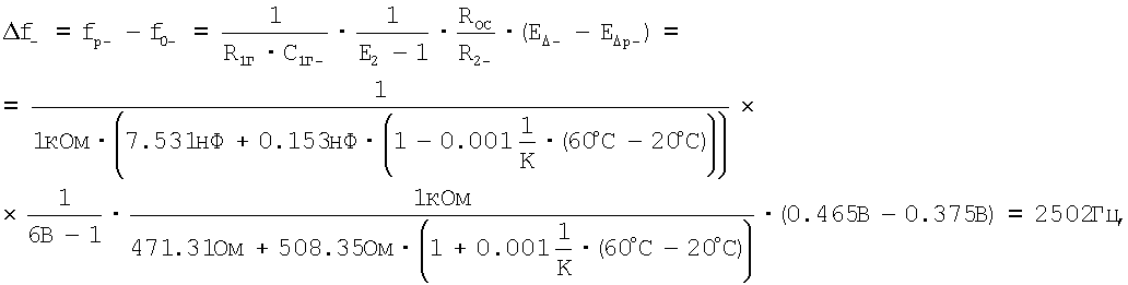 fp- – частота генератора при минимальной рабочей температуре и номинальном значении измеряемого параметра;