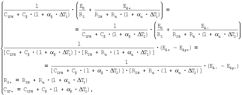 – величина напряжения с детектора, пропорциональная амплитуде колебаний вибрирующего элемента при максимальной рабочей температуре и номинальном значении измеряемого параметра. Решая следующую систему уравнений