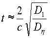 При заданной дисперсии результатов измерения, полученной после обработки первого измерения D1, потребная длительность эталонного процесса t составит: