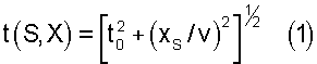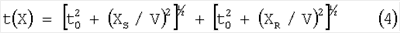 где Xs и XR – расстояния от мигрированного местоположения до демигрированных местоположения источника и приемника соответственно. Уравнение (3) имеет аналогичную форму по отношению к послесверточной поправке. Таким образом, если tm=2t0 и td=t(X), то уравнение (3) принимает вид