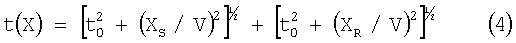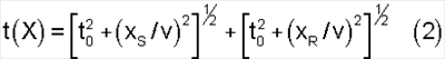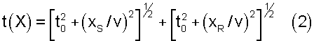 и аналогично для трассы (X, R), так что время распространения на свертке этих трасс выражается как