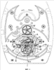 На одном из поворачивающихся концов каркаса С закреплена шестерня 11, которая введена в зацепление с неподвижным часовым колесом 12, размещенным в нижней платине часового механизма. Каркас С поворачивается на двух опорах 13, 14, прочно прикрепленных к часовому механизму, и несет на одной из своих осей поворота шестерню 15, приводимую в движение центральным колесом 16 часового механизма (фиг.1).