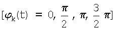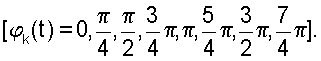 k(t)=0, – манипулируемая составляющая фазы сигнала, отображающая закон фазовой манипуляции, причем k(t)=const при k ии и может изменяться скачком при t=k и, т.е. на границах между элементарными посылками (k=1, 2,…, N-1);