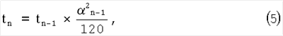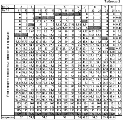 Для приводных средств второй группы вращения и длительность подачи сигналов первого типа рассчитывали согласно формулам соответственно (4) и (5), а угол поворота ( ) поворотных элементов, начиная с ПС 6 (n=2) по ПС 7 выбирали из заранее определенного диапазона согласно условию (6).