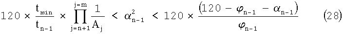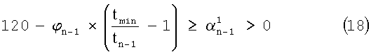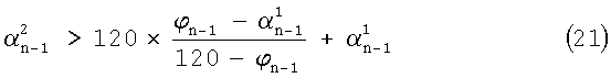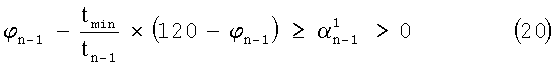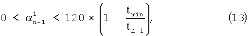 В этом варианте исполнения в выбранной группе, в которой все параметрические углы имеют значение меньше 60°, для случая, когда сигналы первого типа подают в направлении, противоположном направлению вращения поворотных элементов, заранее определенный диапазон для удовлетворяет условию: