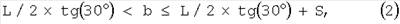 b – кратчайшее расстояние от линии, соединяющей крайние точки стороны поворотного элемента до оси его вращения, выбираемое из диапазона: ,