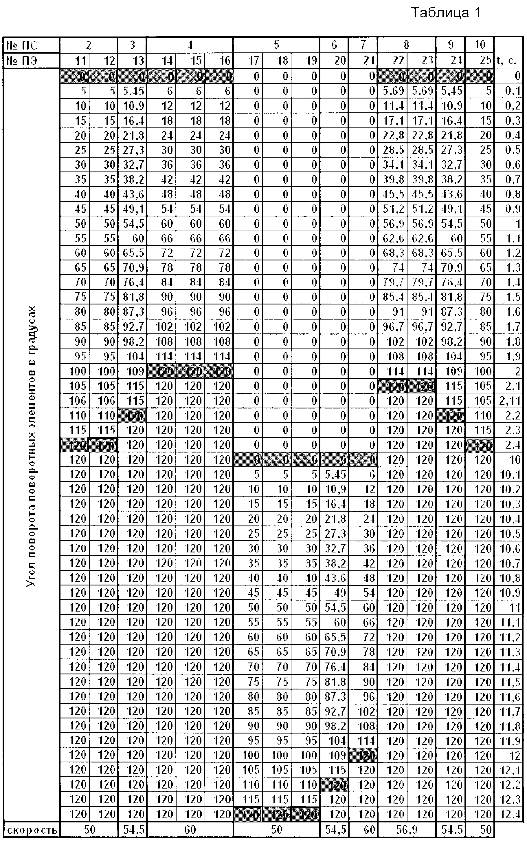 18. Способ по п.1, отличающийся тем, что значение угловой скорости вращения поворотных элементов является изменяемым параметром.