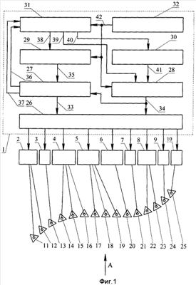 42. Способ по п.1, отличающийся тем, что при выборе длительности сигнала первого типа, подаваемого на каждое последующее приводное средство, начиная от выбранного первого крайнего, используют модель расчета, основанную на том, что при вращении соседних поворотных элементов, связанных с различными приводными средствами, углы поворота в каждой паре соседних поворотных элементов, связанных с различными приводными средствами подбирают так, чтобы один из поворотных элементов этой пары не заходил в зону их возможного пересечения до тех пор, пока другой из нее не вышел.