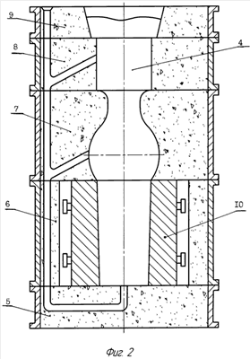 на фиг.2 изображена литейная форма для изготовления языка с ударной частью в виде шара;