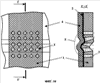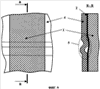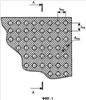 Отверстия перфорации 3 могут быть расположены равномерно по всей поверхности прокладки с шагом tпер=4…100 мм, либо неравномерно. В последнем случае, зона наибольшего (наиболее частого) перфорирования может быть сгруппирована в той области виброшумодемпфирующей плосколистовой прокладки, которая, например, сопрягается с демпфируемой панелью 4 в области выраженной рельефной выпукло-вогнутой поверхности 5 с малыми радиусами изгибов (см. фиг.10), или же – которая подвержена наибольшему вспучиванию вследствие наиболее высоких термических нагрузок и т.п. Отверстия перфорации 3 в структуре вязкоэластичного слоя 1 виброшумодемпфирующей плосколистовой прокладки могут дополнительно соединяться между собой с помощью сообщающихся канавок в виде тиснений, нанесенных по поверхности, сопрягаемой с лицевой поверхностью демпфируемой панели 4 кузова (см. фиг.11, 12, 13, 14).