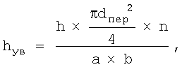 где н – приведенный коэффициент потерь материала сплошной неперфорированной виброшумодемпфирующей плосколистовой прокладки, (kпер=0) определяемый до момента ее перфорирования, при этом толщина перфорированного вязкоэластичного слоя при сохранении общего неизменного веса относительно исходной сплошной неперфорированной виброшумодемпфирующей плосколистовой прокладки меньшей толщины, равномерно увеличена по всей поверхности виброшумодемпфирующей плосколистовой прокладки на величину hув, определяемую выражением: