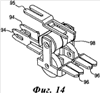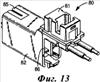 На фиг.14 показано средство защиты от повышенного тока, размещенное в корпус 82 разъема, которое содержит два комплекта контактов, имеющих форму, подобную форме стыковочных контактов 45. Каждый комплект контактов содержит контакты 96, выполненные с возможностью удаления слоя изоляции, и вилочный стыковочный контакт 94, которые выполнены в виде двух элементов (см. фиг.15). В том месте, где два контакта контактируют с ограничителем тока 97, выполнен выступающий элемент, обеспечивающий электрический контакт с двумя противоположными сторонами ограничителя тока 97. Средство защиты от повышенного тока дополнительно содержит заземляющий контакт 95, хвостовая часть которого электрически связана с ограничителем напряжения 98. Обычно ограничителем напряжения 98 является газоразрядная трубка, так что избыточная мощность может быть отведена через заземляющий контакт, когда напряжение слишком высоко. После того как заземляющий контакт 95 объединен с корпусом 82 разъема, часть его выступает наружу из корпуса 82 разъема 80, как показано на фиг.13. В качестве ограничителя тока 97 можно использовать элемент с положительным температурным коэффициентом сопротивления, выполненный, как правило, из керамического материала. Когда ток превышает рабочий диапазон, материал нагревается, его сопротивление растет, соответственно уменьшая ток.