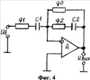 Необходимо отметить, что условия (7), (8), (9), (10) задают соотношения между параметрами однотипных элементов RC-цепей и не обусловливают какие-либо ограничения на величину этих параметров. Следовательно, можно ожидать, что даже при самых минимальных значениях параметров элементов RC-цепей, если будут выполняться условия (7), (8) или условия (9), (10), преобразователь Фиг.3 будет обеспечивать минимальные частотные искажения, вызываемые только паразитными параметрами операционного усилителя. Однако нормально функционировать такой преобразователь не будет, так как в структуре его отсутствует отрицательная обратная связь по постоянному току.