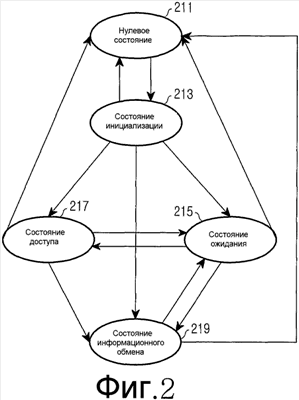 фиг.2 – диаграмма состояний, схематично иллюстрирующая операционные состояния, поддерживаемые уровнем УДСПД в широкополосной системе связи беспроводного доступа в соответствии с вариантом осуществления настоящего изобретения;