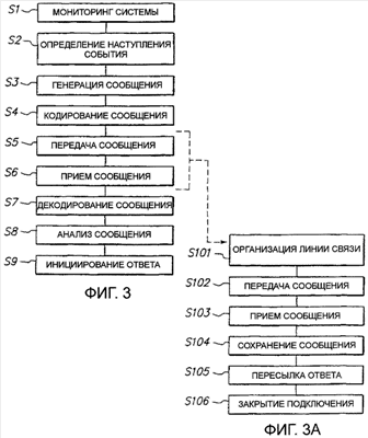 В предпочтительном варианте на этапе S8 сообщение подвергается анализу. В одном примере осуществления этот этап S8 может содержать классификацию содержания сообщения. Например, сообщение может быть классифицировано в категории типа “ошибка/неисправность аппаратных средств”, “ошибка/сбой в программном обеспечении” или “системные данные/учетная информация”. Сообщение может быть также классифицировано множеством других способов. Например, сообщение может быть классифицировано по типу устройства, изготовителю устройства или т.п. Конечно, в предпочтительном варианте сообщение содержит информацию, относящуюся к отдельным параметрам, которые используются для классификации сообщения, типа имени изготовителя устройства генерации и передачи сообщения.