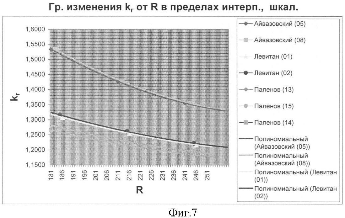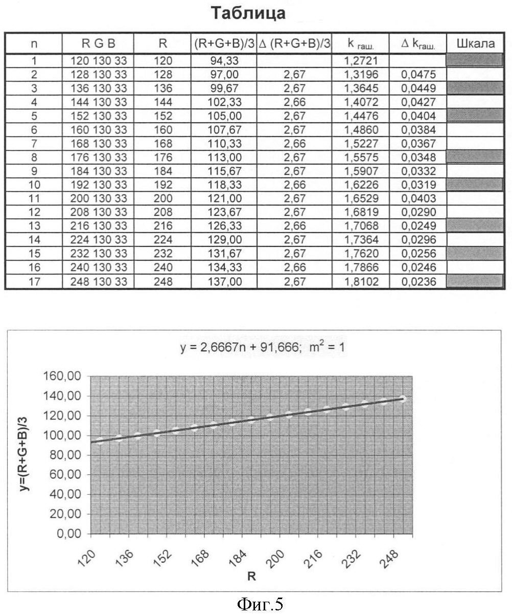 5. Для того чтобы выяснить возможность использования с этой целью ур.1, сначала автор настоящего изобретения исследовал зависимость kг от изменения цвета колера в пределах смоделированных им с помощью компьютера цветовых шкал, как это показано в приложении (не публикуется). Из приведенных результатов исследования видно следующее.