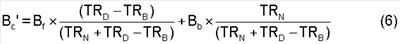 К тому же, как следует из фиг.4, в случае получения вектора движения вперед в режиме прямого предсказания в соответствии с настоящим изобретением блок с компенсацией движения Bf находится в опорном кадре (Р4), ближайшем к текущему В-кадру, а блок с компенсацией движения Вb находится в последующем опорном кадре для режима прямого предсказания (Р7). Поэтому интерполяционное предсказание осуществляют по уравнению (6). В данном случае TRD – это временной интервал между предыдущим опорным кадром для режима прямого предсказания (Р1) и последующим опорным кадром для режима прямого предсказания (Р7), TRB – временной интервал между предыдущим опорным кадром для режима прямого предсказания (Р1) и текущим В-кадром, а TRN – временной интервал между опорным кадром (Р4), ближайшим к текущему В-кадру, и текущим В-кадром