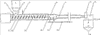 2. Установка для получения экстракта кофе и его заменителей, содержащая бункер для сырья и экстрактор непрерывного действия, отличающаяся тем, что она снабжена экструдером, установленным перед экстрактором и выполненным с реверсивными элементами, монтированными на шнеке на расстоянии 1/3-1/4 его длины от выхода экструдата, а экстрактор имеет вид трубопровода, передняя часть которого выполнена в виде смесительной камеры с оппозитно установленными форсунками, связанными с трубкой подачи горячей воды под давлением, и соединена с корпусом экструдера в зоне выхода экструдата, а задняя часть снабжена регулируемой заслонкой.