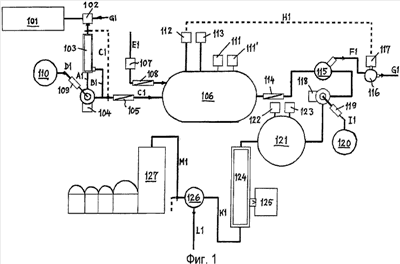 Контроль условий в ферментере 301 осуществляют непрерывно, автоматически или путем отбора образцов. Введение различных добавок осуществляют таким образом, что поддерживаются как можно более постоянные условия ферментации в рамках интервалов значений, являющихся оптимальными для производимого продукта.