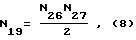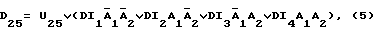 Частота сигнала на выходе третьего делителя 27 f27 определяется как![]() где f4 – частота генератора 4, N27 – коэффициент пересчета третьего делителя 27. Частота f23 выходного сигнала триггера 23 – в два раза меньше величины f27. Функция мультиплексора 25, то есть его выходной сигнал D25, определяется, согласно [5], как ![]() где U25 – сигнал на входе управления мультиплексора 25, (DI1 – DI4) – сигналы на первом – четвертом информационных входах мультиплексора 25 соответственно, A1, A2 – сигналы на первом и втором адресном входах мультиплексора 25 соответственно. Так как в этом режиме сигнал на первом адресном входе мультиплексора 25 имеет высокий уровень, то его выходной сигнал определяется уровнями сигналов на втором или четвертом информационных входах в зависимости от направления вращения вала двигателя 1. Так как на эти входы поступают импульсы частоты f23, то, согласно (5), на выходе мультиплексора возникают инверсные импульсы такой же частоты. Относительная длительность этих импульсов равна 0,75 (фиг. 3). Частота следования импульсов на выходе второго делителя 26 определяется как ![]() где N26 – коэффициент пересчета делителя 26. Такое значение частоты сигнала на выходе делителя 26 имеет место при нулевой скорости двигателя 1. Известно, что для фазовой системы электропривода состояние равновесие достигается при равенстве частот на первом и втором входах частотно-фазового дискриминатора 3 (f19=f26 (7) Так как то условие задания нулевой скорости двигателя 1 определяется как![]() где N19 – коэффициент пересчета делителя 19. При вращении вала двигателя 1 по часовой стрелке (фиг. 4) появляются импульсы на выходах фотоимпульсного датчика 20. При этом на втором выходе дискриминатора 3 и связанном с ним выходе триггера 13 присутствует широтно-импульсный сигнал. Фронт этого сигнала определяется импульсом с делителя 26, а спад – импульсом с делителя 19. При этом сигнал на выходе триггера 21 имеет высокий уровень. Фронт импульса со второго выхода фотоимпульсного датчика 20 устанавливает высокий уровень сигнала на выходе триггера 22. Ближайший к этому моменту времени фронт импульса с триггера 23, согласно (3), сбрасывает триггер 24. Это приводит к возвращению триггера 22 в исходное состояние, так как на входе его сброса появляется сигнал низкого уровня. При полученной комбинации сигналов на адресных входах мультиплексора 25 (A1=0 и A2=1) сигнал на его выходе, определяемый как D25= U25 DI3, тождественно равен логической единице, так как DI3=1. Следовательно, запрещается прохождение импульсов с выхода делителя 27 на выход мультиплексора 25. Такое состояние сохраняется в течение одного периода выходного сигнала триггера 23. В момент его окончания на выходе триггера 24 устанавливается сигнал высокого уровня. При этом устанавливается такая комбинация сигналов – на адресных входах мультиплексора 25, которая разрешает прохождение каждого второго импульса с делителя 27 на выход мультиплексора 25. При появлении следующего фронта на втором выходе фотоимпульсного датчика 20 процессы повторяются. Так как в течение периода T20 выходного сигнала фотоимпульсного датчика 20 происходит “высекание” одного импульса из выходной частоты мультиплексора 25, то общее их число за это время определяется как![]() где T23=f23-1 – период частоты выходного сигнала триггера 23. Среднее значение частоты выходного сигнала мультиплексора 