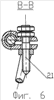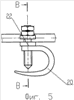 В узле может быть использован элемент крепления с крепежной частью в виде крючка 20 со ввернутым в его пятку резьбовым стержнем 21, служащим в качестве резьбовой головки, а опорной является поверхность 22 пятки.