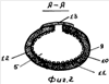 Устройство для магнитотерапевтического воздействия на организм человека при его физических нагрузках содержит спортивный снаряд 1, перемещаемый человеком 2 в процессе физических нагрузок относительно своих различных частей тела: ног 3, рук 4, туловища 5 и т.д. На фиг.1 в качестве примера спортивного снаряда 1 приведены гантели с размещенными на них постоянными магнитами 6. При этом на части тела 3, 4, 5 и т.д. человека 2, подвергаемые магнитотерапии, надеты соответственно упругие рукава 7, 8, 9 и т.д. из эластичного материала, каждый из которых имеет замкнутую герметично закрытую кольцевую полость 10, заполненную ферромагнитным материалом 11, и снабжен размещенным на контактирующей с телом человека 2 поверхности рукава 7, 8, 9 и т.д. многоигольчатым аппликатором 12, при этом в качестве ферромагнитного материала 11 может быть использован либо ферромагнитный порошок, либо магнитная жидкость. При размещении рукавов 7 на ногах 3, рукавов 8 на руках 4 рукава выполняются замкнутыми кольцевыми и натягиваются с натягом на соответствующие части тела человека. При размещении упругого рукава 9 на туловище 5 в областях живота, грудной клетки и т.п. рукав 9 может быть натянут, как в предыдущих случаях, через голову или через ноги, а может быть, как показано на фиг.2, выполнен разрезным и затягиваться с помощью специальных фиксаторов-липучек 13. В устройстве могут быть использованы различные спортивные снаряди 1: гантели, велотренажеры, весла, ракетки и т.д. Естественно, при этом магнитотерапия осуществляется только для тех частей тела человека 2, вблизи которых совершаются относительные перемещения данного снаряда при физических упражнениях. Соответственно, только на эти части тела и надеваются упругие рукава 7, 8, 9 и т.д. Например, при работе с гантелями /упражнения с наклонами тела, сгибание рук в локтях, скрещивание рук, опускание и поднятие рук вдоль туловища/ упругие рукава надеваются на бедра, голени, туловище, на руки выше и ниже локтя, при работе на велотренажере рукава надеваются на ноги выше и ниже коленей, при работе на веслах рукава надеваются на нижнюю часть туловища, на бедра и на руки ниже локтей и т.п. Размещение постоянных магнитов 6 на спортивном снаряде 1 в каждом конкретном случае зависит от вида снаряда и характера совершаемых с ним упражнений. При этом по возможности магниты 6 целесообразно устанавливать на участках снарядов 1, расположенных в процессе упражнений наиболее близко к телу человека. Так, например, при упражнениях с веслами /гребле/, с ракеткой постоянные магниты целесообразно размещать вблизи рукоятки, при упражнениях с гантелями 1 /см. фиг.1/ постоянные магниты 6 целесообразно выполнять в виде аксиально намагниченных дисков, закрепляемых на торцах гантелей. Это, во первых, удобнее в технологическом плане, а во вторых, выступающие торцы при упражнениях проходят ближе к телу человека. При работе на велотренажере плоские постоянные магниты целесообразно закреплять на основании в местах прохождения рядом с ними внутренних поверхностей бедер и голеней при вращательных движениях ног. Упругие лукава 7, 8, 9 и т.д. выполнены из высокоэластичной синтетической резины, например, полисилоксановой, применяемой при изготовлении эластичных /неметаллических/ мембран с малой жесткостью и большими деформациями при внутренних давлениях. В качест