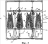 Обращаясь к фигурам 8 и 9, мы видим, что торцевые крышки 284, 286, 384, 386 имеют первое и второе углубления 228, 230, расположенные рядом с концами лотков 204, 206.