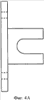 фиг.3А-3D – U-образная скоба для установки удлиненного направляющего рельса на крышке согласно данному изобретению, при этом на фиг.3А показана U-образная скоба на виде снизу, на фиг.3В – в изометрической проекции, на фиг.3С – на виде спереди и на фиг.3D – на виде сбоку;