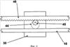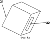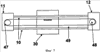Первый 11 и второй 12 буферные упоры расположены на верхней поверхности 19 горизонтального верха 26, так что удлиненный направляющий рельс 10 проходит по существу параллельно удлиненной прорези 21 в горизонтальном верхе 26. Первый и второй буферные упоры 11 и 12 могут быть прикреплены к крышке 20 с помощью любых средств, обеспечивающих надежное крепление удлиненного направляющего рельса 10 к крышке 22. Предпочтительным средством крепления являются U-образные скобы 13 и 14. Один вариант выполнения U-образной скобы 13, 14, пригодной для крепления удлиненного направляющего рельса 10 к крышке 20 согласно данному изобретению, показан на фиг.3А-3D. Однако в другом варианте выполнения удлиненный направляющий рельс крепится к крышке без использования U-образных скоб 13, 14, как показано на фиг.5.