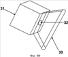 В другом варианте выполнения данного изобретения веерообразная форма аэрозоля может обеспечиваться посредством выброса находящейся под давлением жидкости из распылительного канала 32, который может иметь любую геометрическую форму, при этом веерообразная форма аэрозоля образуется за счет прохождения потока распыленной жидкости через по существу плоскую, выполненную в форме веера распылительную насадку 33, как показано на фиг.8В.