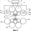 фиг.2 – в увеличенном изображении комплект валков в виде сплит-блоков с позициями для установочных элементов регулирования плоскостности;
