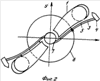 На фиг.2 изображена система из двух лопастей – 1, свободно укрепленных петлями 5 к обрамлению – 3, на котором установлен ТРД 4; обрамление в свою очередь жестко связано с валом – 7; обрамления механически связаны между собой кольцом – 6, служащим для плавной передачи момента вращения на лопасти и вал – 7.
