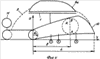 Коэффициенты К1 и К2 рассчитываются по формулам: К1=У1А/Х1А 1/2; K2=У2В-2R0/X2B 1/2, где точки А и В – точки касания параболами У1 и У2 окружности радиусом R. Точка А находится пересечением линии угла атаки  70 с перпендикуляром, восстановленным из точки l 2/3L. Точка В – конец диаметра, отложенного от точки А, отложенного на восстановленном перпендикуляре. Таким же образом образуется и рассчитывается лопасть рулевого винта. Профиль лопасти несущего и рулевого винта образуется пересечением двух парабол: У3=К3X1/2; У4=K4X1/2+2R0. Передняя острая кромка окружена радиусом R R0 для улучшения обтекаемости; задняя кромка имеет стабилизирующую плоскость величиной M R0 на конце лопасти, уменьшающуюся до нуля на 1/3 длины от начала координат и служащую для уменьшения свободных колебаний. Коэффициенты К3 и К4 выбирают из следующих величин: К3 1; К4=(0,4-0,8)К3. Конец лопасти загнут на угол  60° (для направления центробежного потока, повышая его подъемную силу (фиг.1, 2).