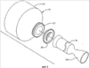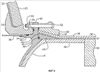 Алюминиевое зажимное кольцо 50, внутренняя поверхность 51 которого сужается в направлении вперед и наружу, посажено поверх переднего конца корпуса двигателя и на заднюю поверхность фланца 46. Ряд резьбовых крепежных деталей 52 проходит через сопрягаемые отверстия в кольце 50, фланце 46 и фланце 27 к гайкам 53 для плотного скрепления этих деталей вместе, таким образом жестко прикрепляя корпус двигателя к баку. Дополнительные уплотнения 54 с уплотнительным кольцом посажены во фланце 46 и в выступающем вперед кольце 55, образованном за одно целое с задним днищем. Перфорированная цилиндрическая труба 56 прикрепляется к кольцу 55 и выступает вперед внутри бака окислителя, чтобы получить демпфирующую перегородку.