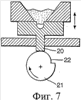 Однако было обнаружено, что такая геометрия может привести к изменению места отделения порошка, когда сито поднимают от наполненного порошком контейнера. А именно иногда порошок отделяется в нижней части 20 отверстия, оставляя в контейнере плоскую поверхность порошка, а иногда в верхней части 21 отверстия, образуя на поверхности порошка в контейнере столбик порошка.