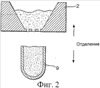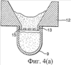 Контейнер 9 наполняют, как описано выше, но только до высоты, на которой находится пластина с отверстиями, а не до краев. На фиг.4b показаны бункер и контейнер после наполнения. Видно, что контейнер наполнен не до верха и что а=b, где b – глубина, на которую пластина с отверстиями опущена относительно бункера. Очевидно, что глубина наполнения может быть задана конструкцией бункера и пластины с отверстиями. Возможна небольшая регулировка высоты наполнения путем изменения положения контейнера относительно бункера с помощью тонких прокладок.