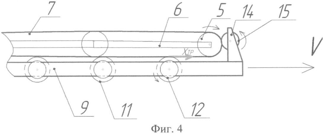 Затем включают привод ролика 16 для перемещения ленты 7 в обратном направлении. Разгрузка транспортного средства производится аналогично в обратном направлении рабочего цикла устройства.