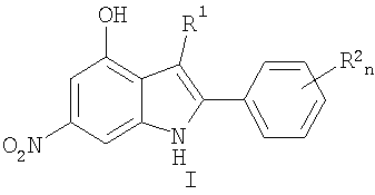 1. Замещенные 4-гидрокси-6-нитро-2-фенилиндолы общей формулы I
