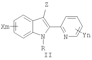 Соединения II получены по реакции Фишера из гидразонов, синтезированных из соответствующим образом замещенных фенилгидразинов и 2-ацетилпиридинов.