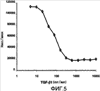 Фиг.5 в виде диаграммы показывает влияние концентрации TGF- 1 на рост клеточной линии Mv-1-Lu, выражаемой в накоплении тритиированного тимидина в числе импульсов в минуту (имп/мин).