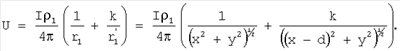 Например, для раздела двух сред потенциал точечного источника определяется следующим соотношением [4]: