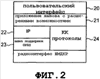 Фиг.2 показывает функциональную архитектуру терминала, выполненного с возможностью действия как ПУ 1, 2 в архитектуре по фиг.1 и обеспечения одновременных линий связи с коммутацией каналов и с коммутацией пакетов между обычными конечными точками. Более высоким уровнем 20 архитектуры является пользовательский интерфейс, который управляет взаимодействием между составляющими более низких уровней и пользователем. Ниже пользовательского интерфейса 20 находится приложение 21, выполняемое на терминале. В этом примере приложением является приложение, которое может поддерживать расширенные услуги или услуги вызова с широкими возможностями. Ниже приложения находятся уровни, которые форматируют исходящие данные или обрабатывают входящие данные в соответствии с требованиями коммутации пакетов или коммутации каналов. В этом примере уровни с коммутацией пакетов (КП) (PS) содержат более высокий уровень 22 интернет-протокола IP и уровень 23 шлюза общих услуг пакетной радиосвязи. Обработка с коммутацией каналов (КК) (CS) управляется уровнем 24 протоколов КК. Уровни КП и КК эффективны при параллельном использовании. Ниже уровней КП и КК находится радиоинтерфейс к системе широкополосного множественного доступа с кодовым разделением каналов (МДКР) (CDMA) третьего поколения.