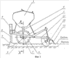 При дальнейшем качении барабана сила веса сеялки на этот плунжерный выталкиватель перестает действовать и под действием пружин 24 и 29 и упругости эластичной обечайки 16 втулки 22 и 23 смещаются относительно одна другой, стакана 21 и плунжера 30. При этом плунжер 30 благодаря усилию пружины 29 постоянно прижат к донышку стакана 21. Зерно при этом положении попадает в продольное отверстие втулки 23 и удерживается там пружиной 28. Одновременно смещение отверстий 34, 35 и 33 предотвращает попадание других семян внутрь плунжерного выталкивателя семян. При дальнейшем качении барабана зерно переносится, как показано на фиг.4, в верхнее положение и затем вниз.